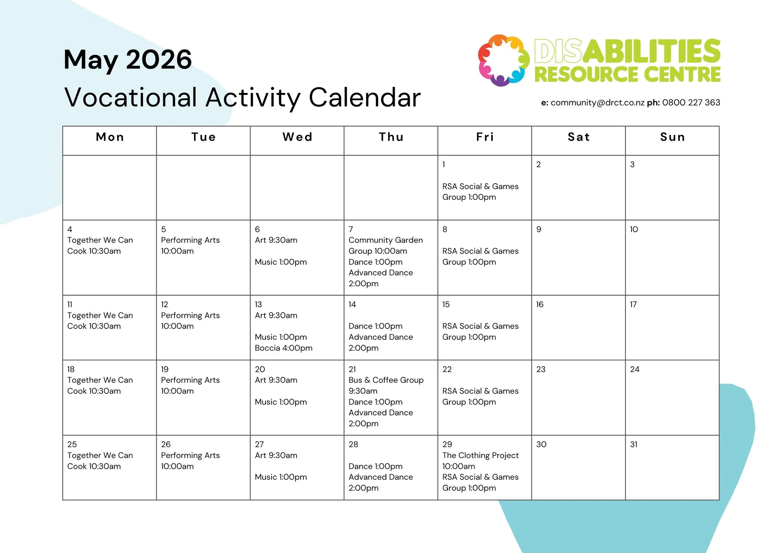 For more information about this service, including eligibility criteria, see our Vocational Services Fact Sheet, or call our Community Programmes Co-ordinator on 0800 227 363.